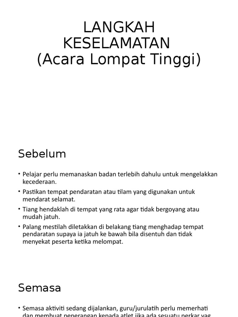 Pendidikan Jasmani Dan Kesihatan Lompat Tinggi